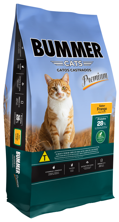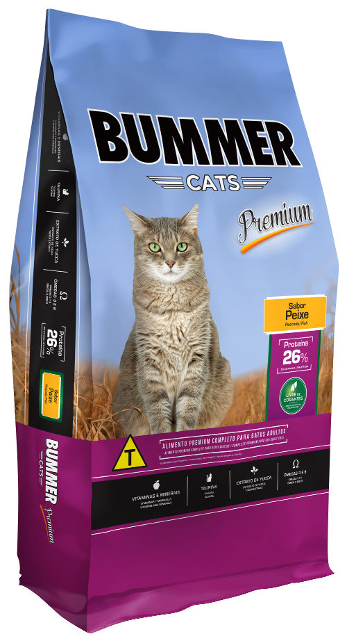 Bummer® Cats é um alimento completo de alta qualidade para gatos adultos de todas as raças, elaborado com ingredientes selecionados, cuidadosamente balanceados e processados de forma a obter a combinação ideal entre nutrição e sabor.